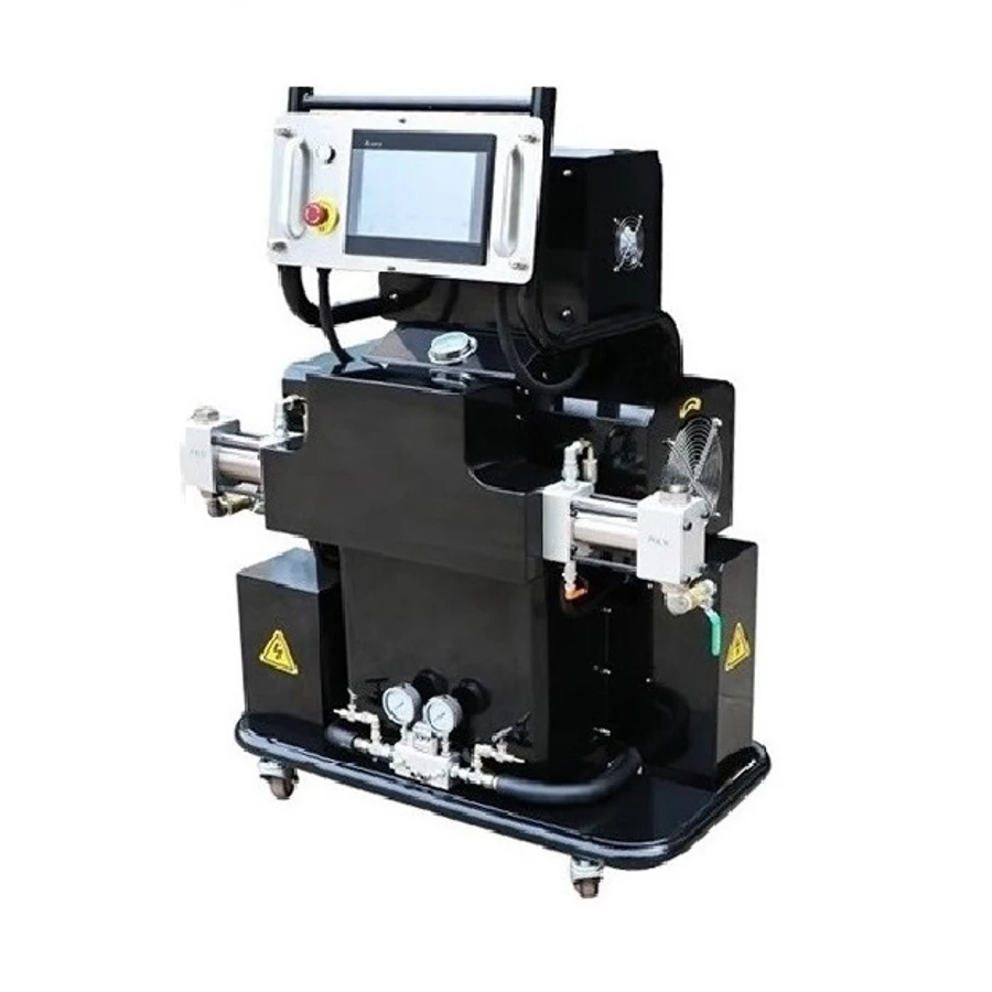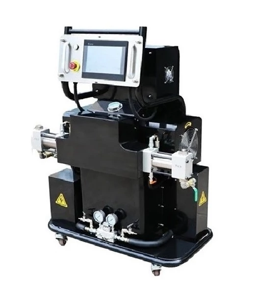 A nagynyomású pumpák meghajtásáról hidraulikus olajszivattyú gondoskodik. A rendszer tartalma 2db pneumatikus szállító pumpa, ezeket a pumpákat kell elhelyezni a folyadéktartályokban. Mobilitásáról a stabil kerekek gondoskodnak. Ajánlott ~100-500 m2 felületek „egyidejű” szórására. Purhab és poliurea szórására egyaránt alkalmas!